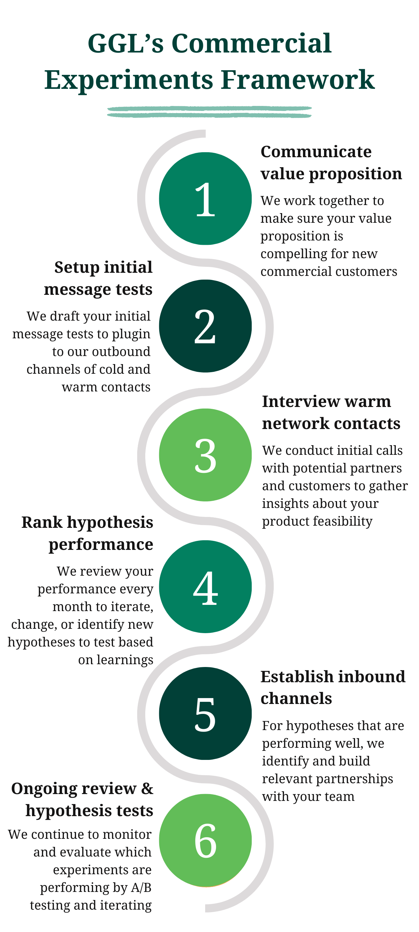 Then we test your messaging in the market by conducting structured interviews with our warm network as well as cold contacts to gather firsthand data about your hypothesis. We use our proprietary experimental method to yield real, customer behavioural insights to our clients.